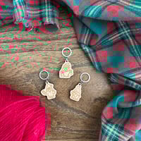 Lot anneaux marqueurs de maille en bois : thème gnomes de Noel