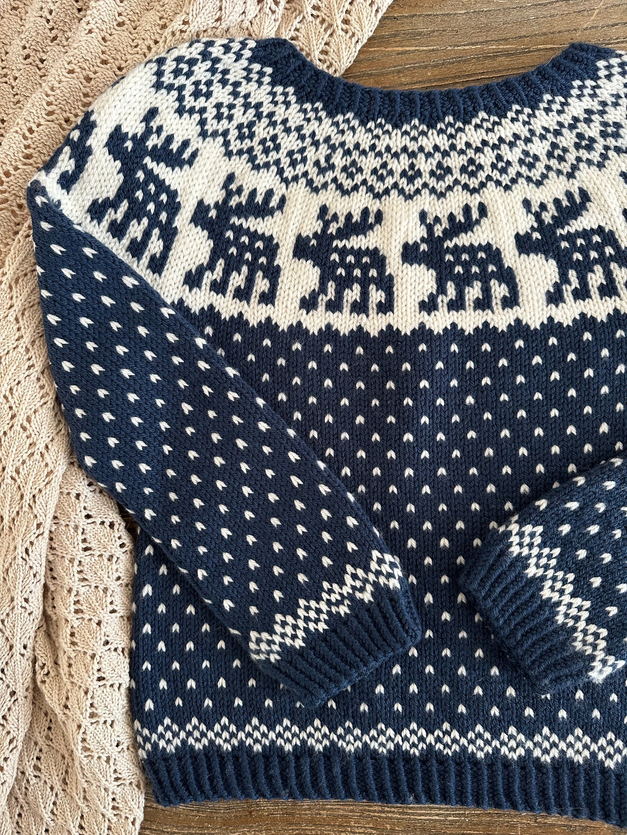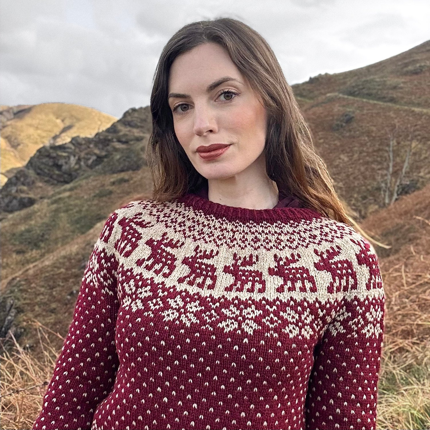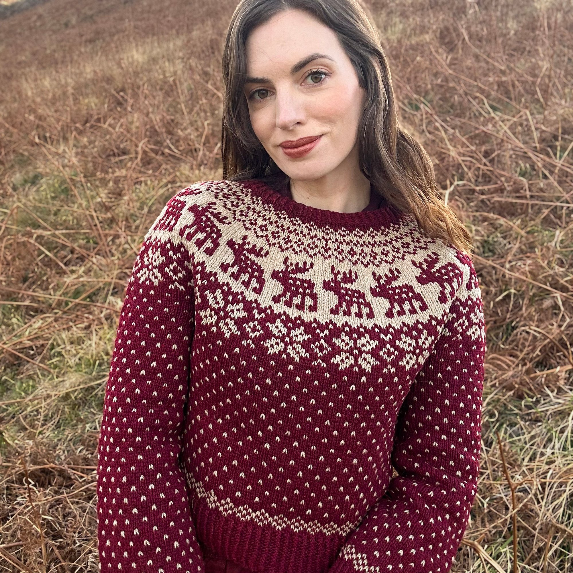 Snowy Deer est un patron de pull chaud inspiré par l’esthétique nordique et la sérénité des paysages d’hiver.