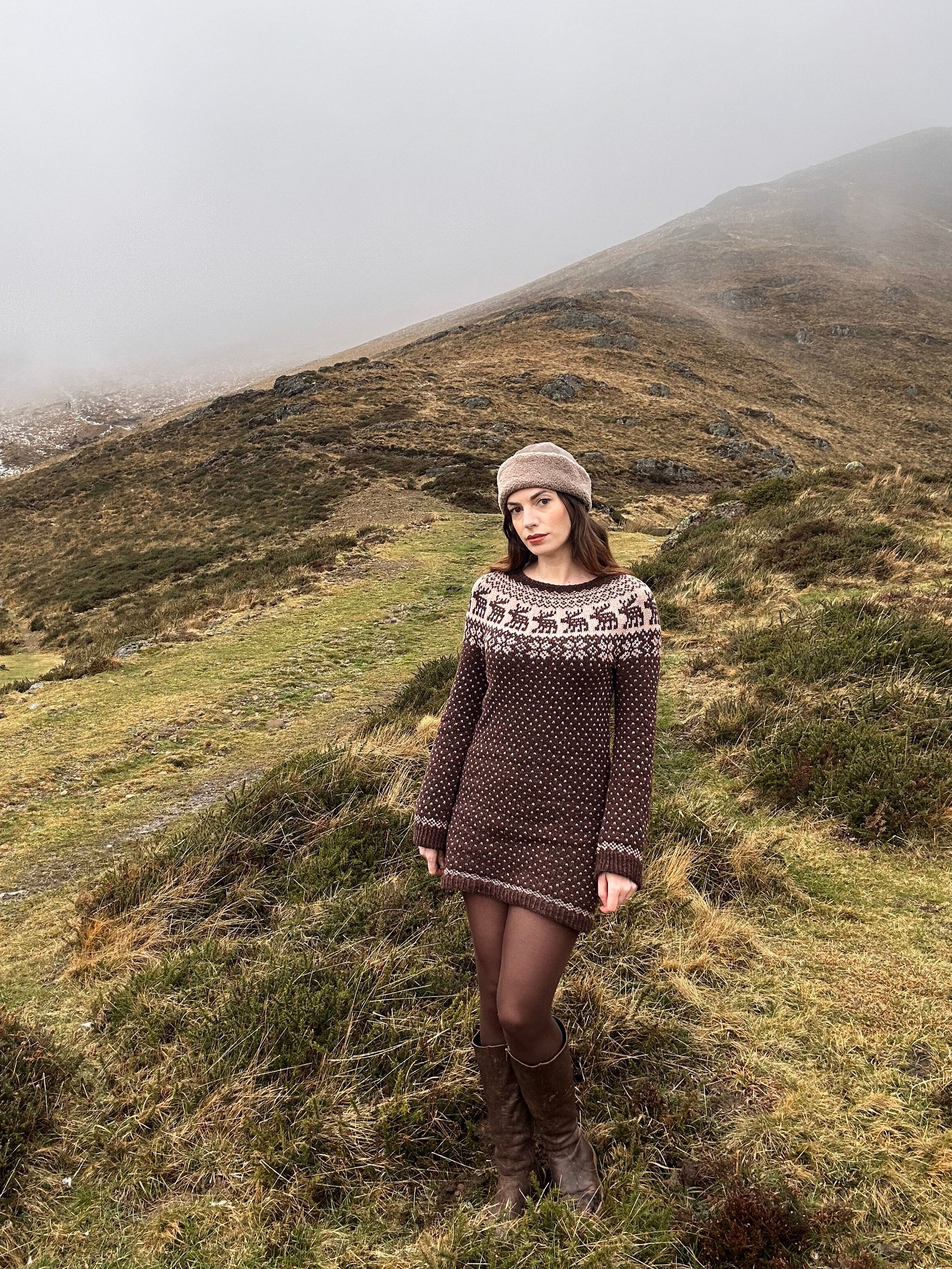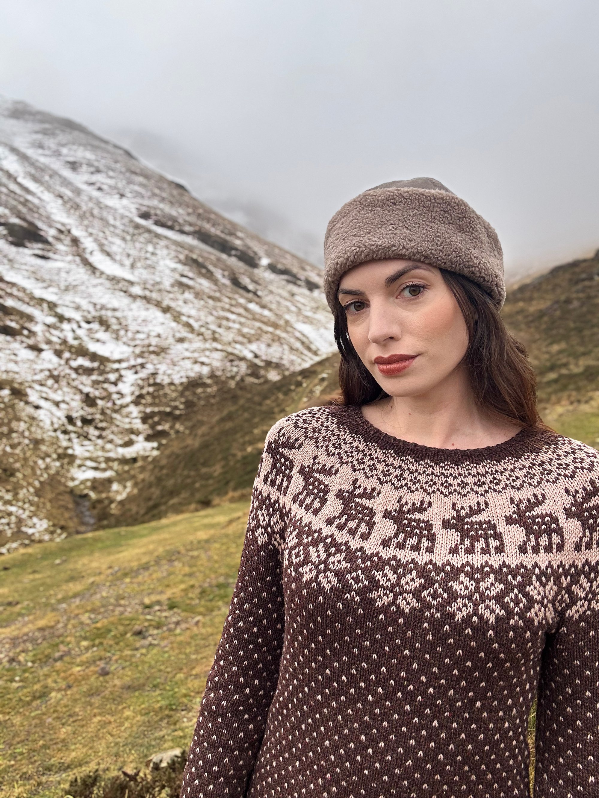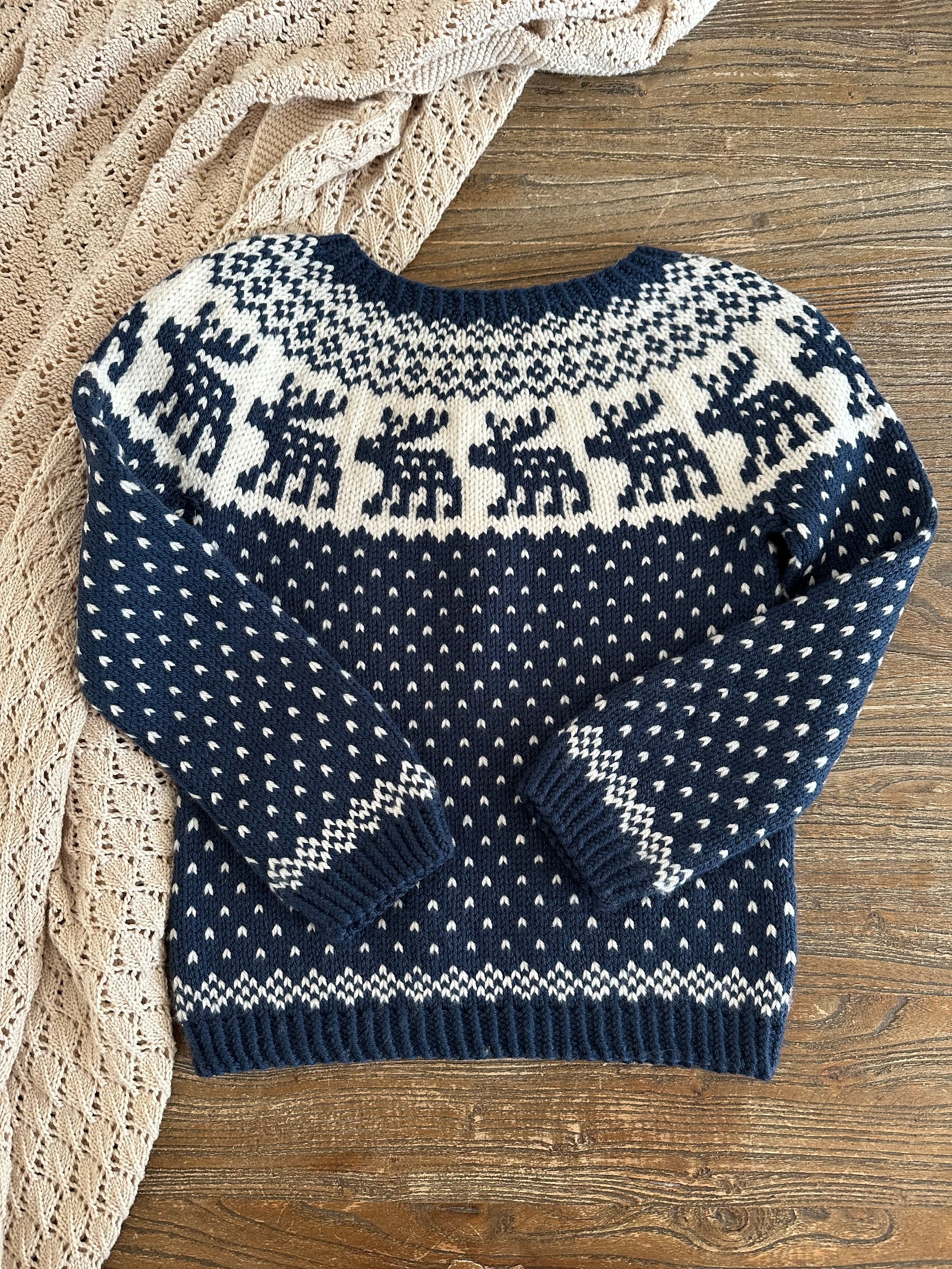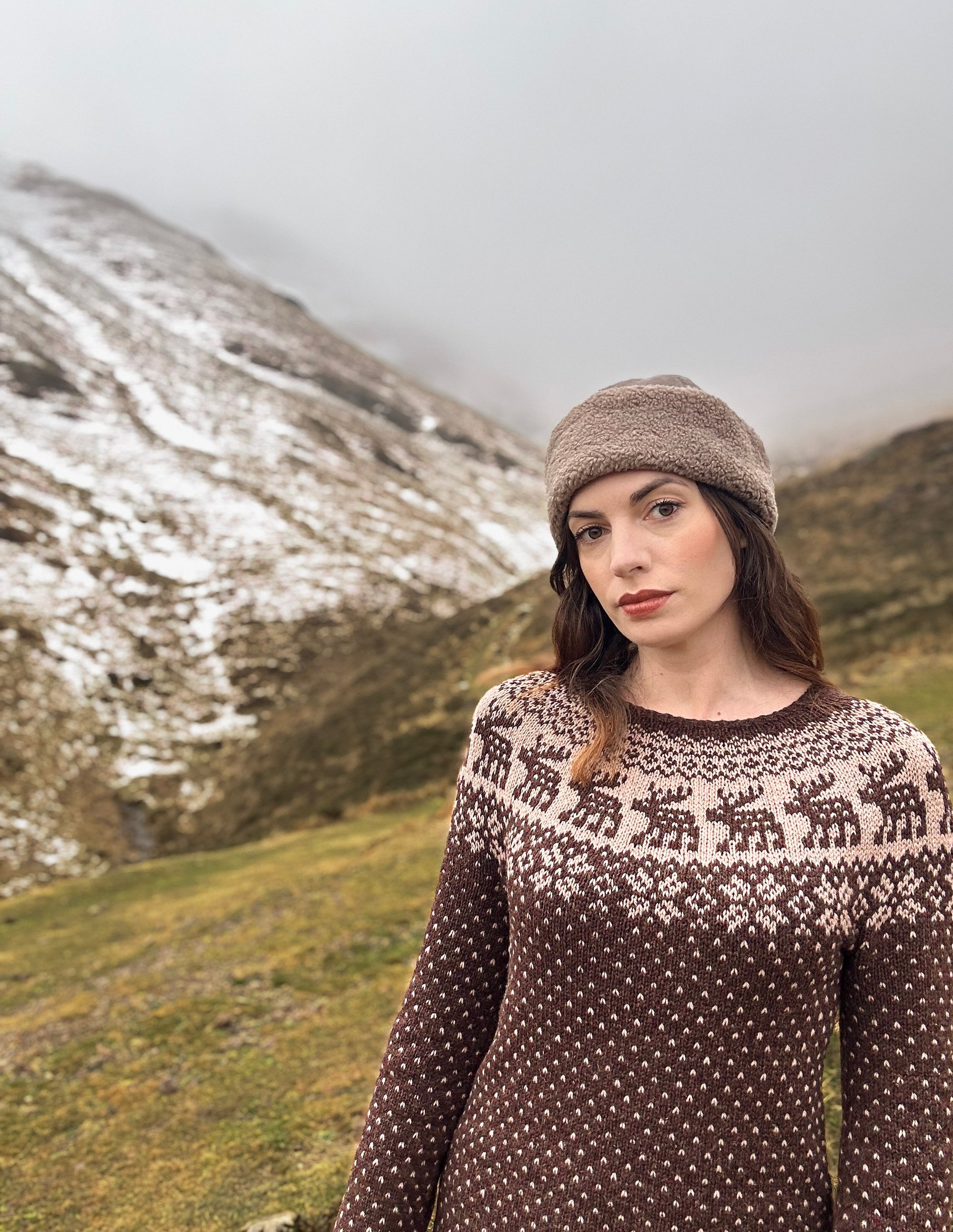 Snowy Deer est un patron de pull chaud inspiré par l’esthétique nordique et la sérénité des paysages d’hiver.